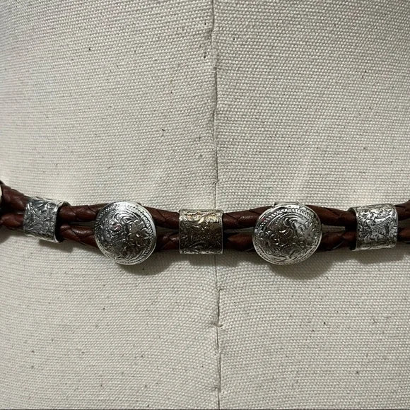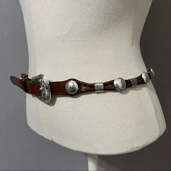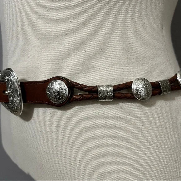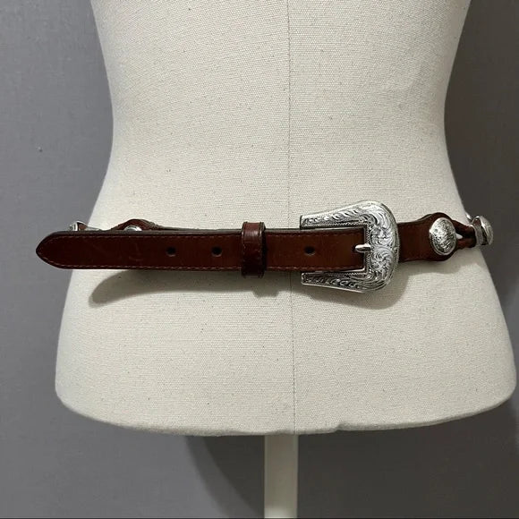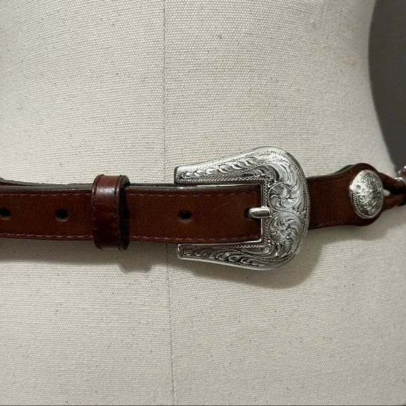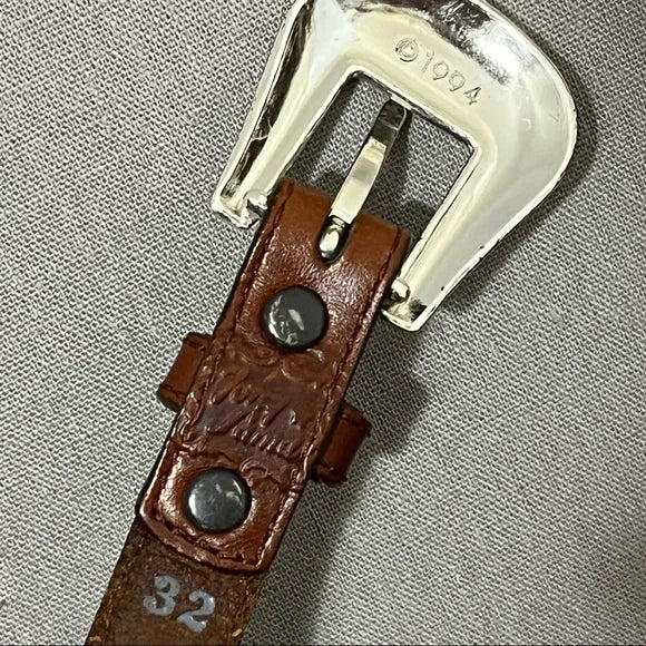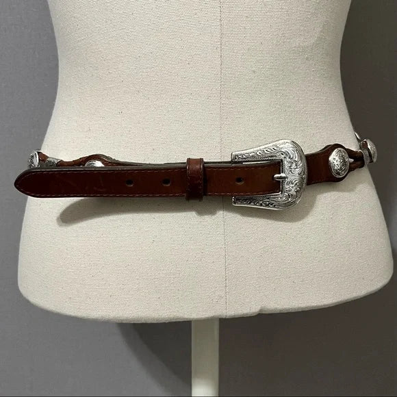 Tony Lama Brown Leather Silver Hardware/Buckle Skinny Belt Sz-32