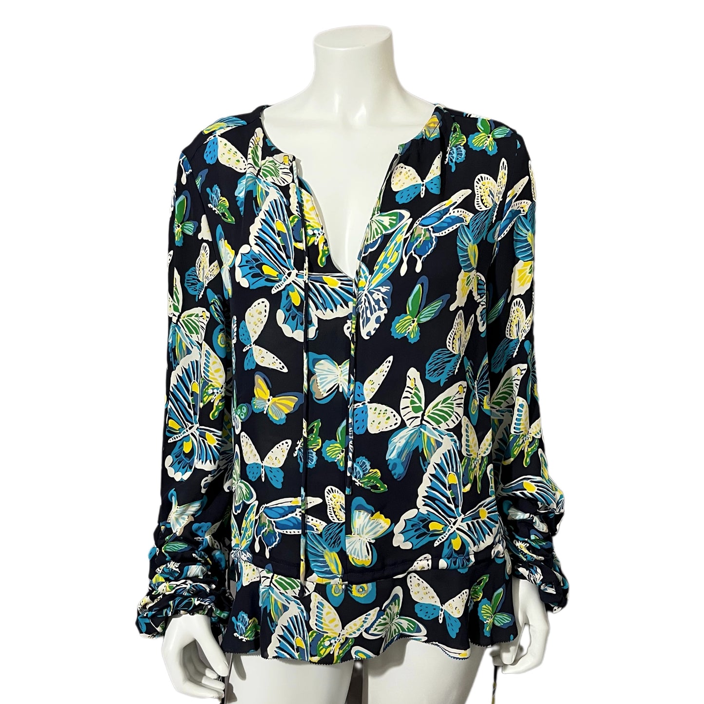 Tory Burch Blue Butterfly Silk Blouse Sz-Medium