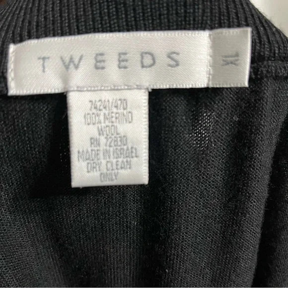 Details: Tweeds black maxi merino wool pencil knit skirt, with pull on pleated for added detail. Gently used condition, please see photos for flaws! Please look through all photos for any flaws to verify the condition. Major flaws will be disclosed.