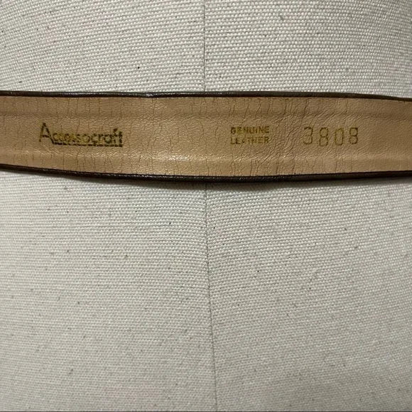 Details: Vintage Accessocraft belt, withtaupe double XX skinny leather adjustable for added detail. Gently used condition, please see photos for flaws! Please look through all photos for any flaws to verify the condition. Major flaws will be disclosed.