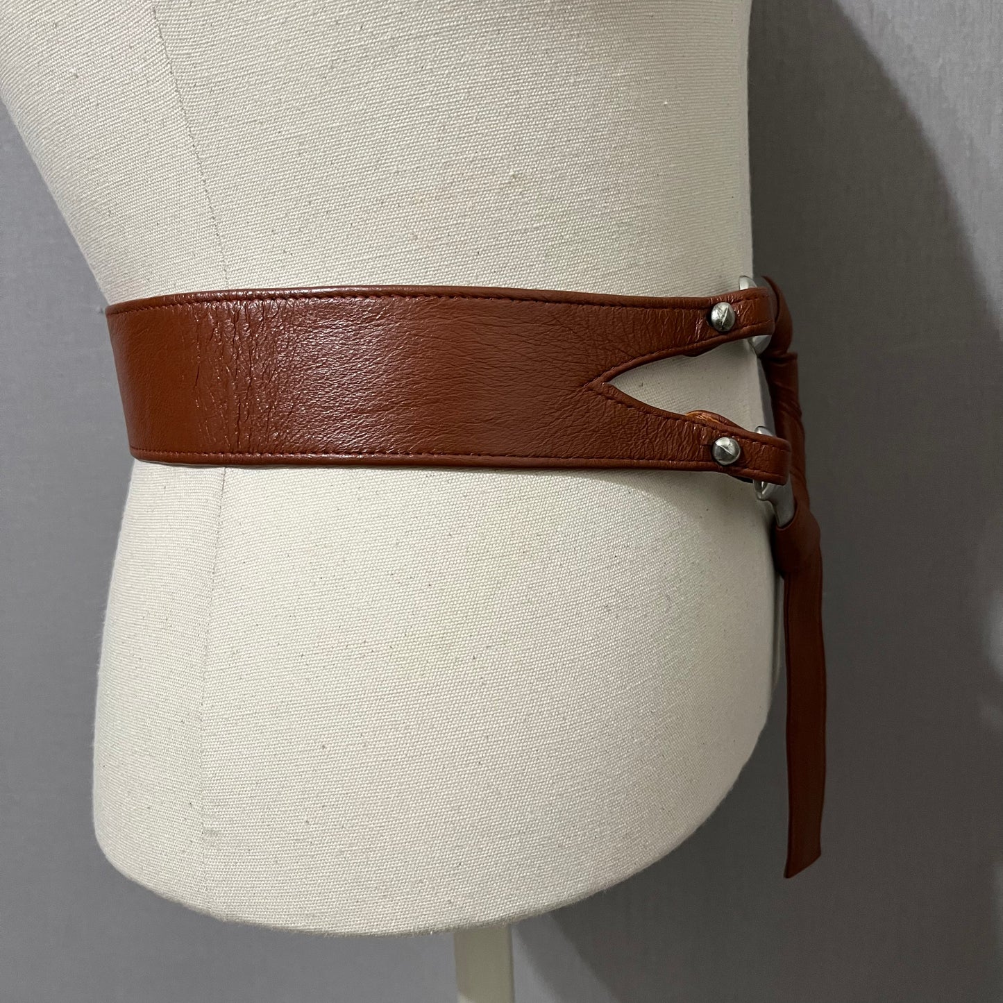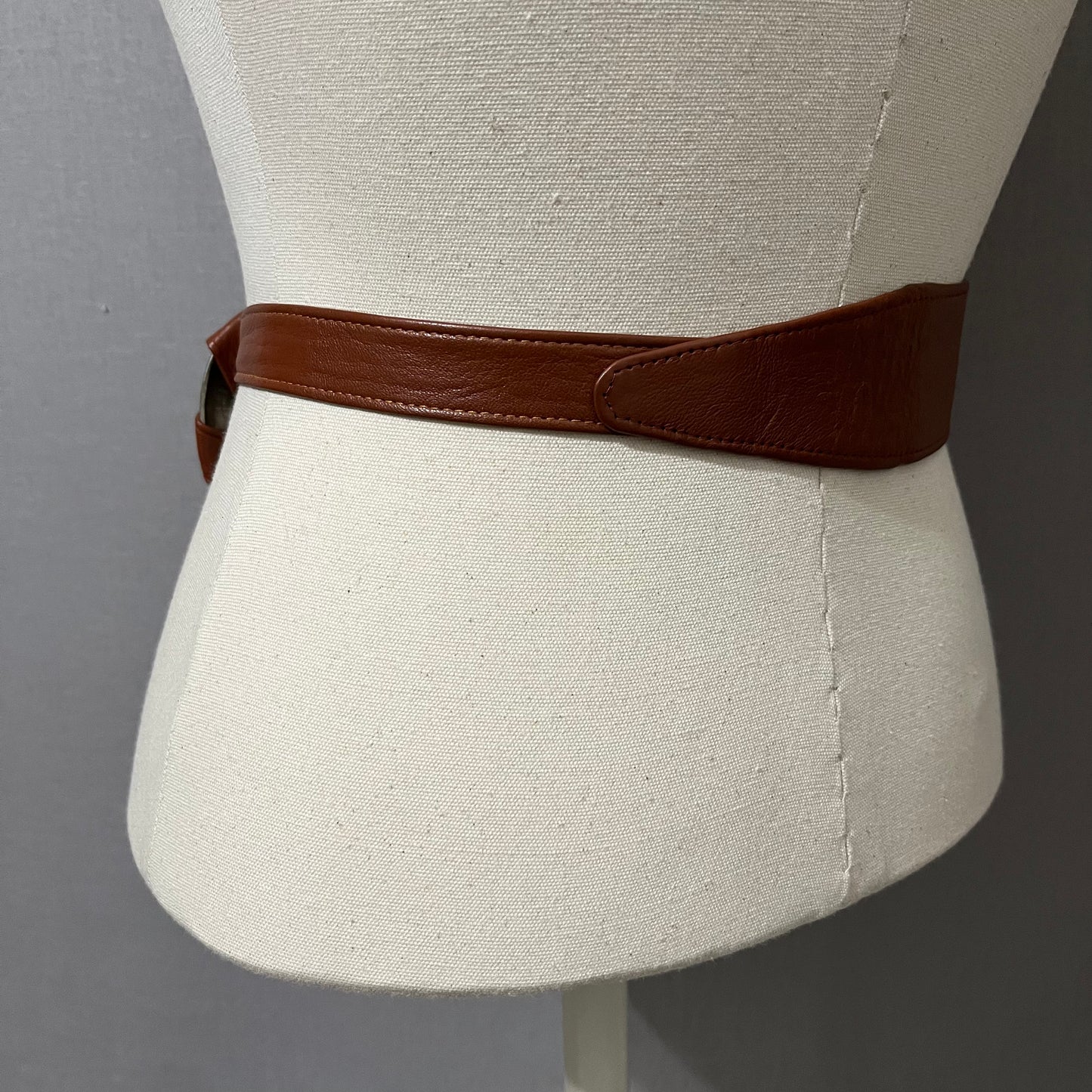 Vintage Alexis Kirk Large Silver Metal With Cognac Leather Strap Sz-OS