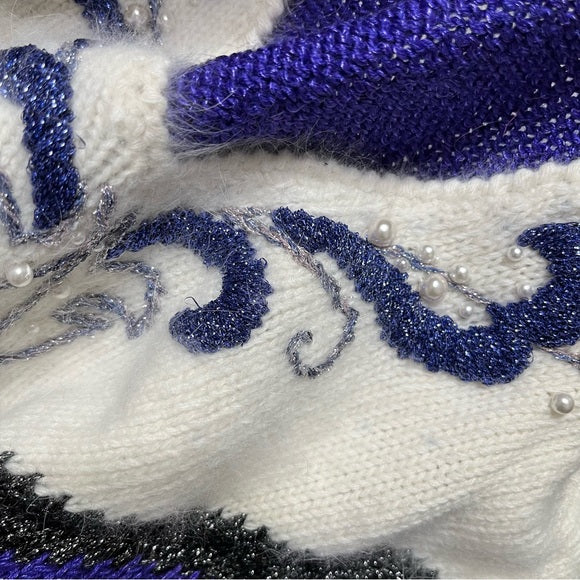 Vintage Angenie Purple Metallic Pearl V-Neck Sweater