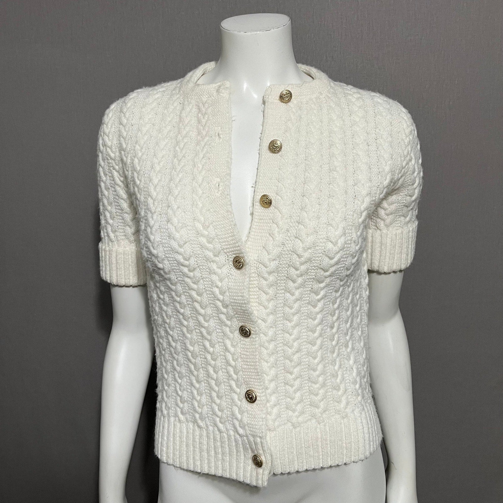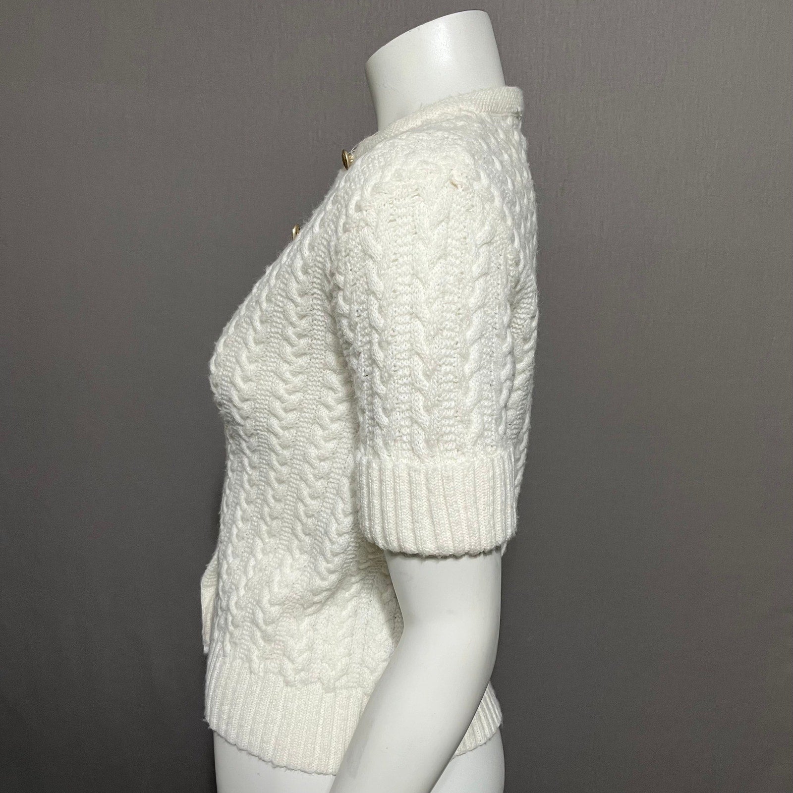 Vintage Bradley Cream Textured Knit Gold Button Front Cardigan Sz-Small