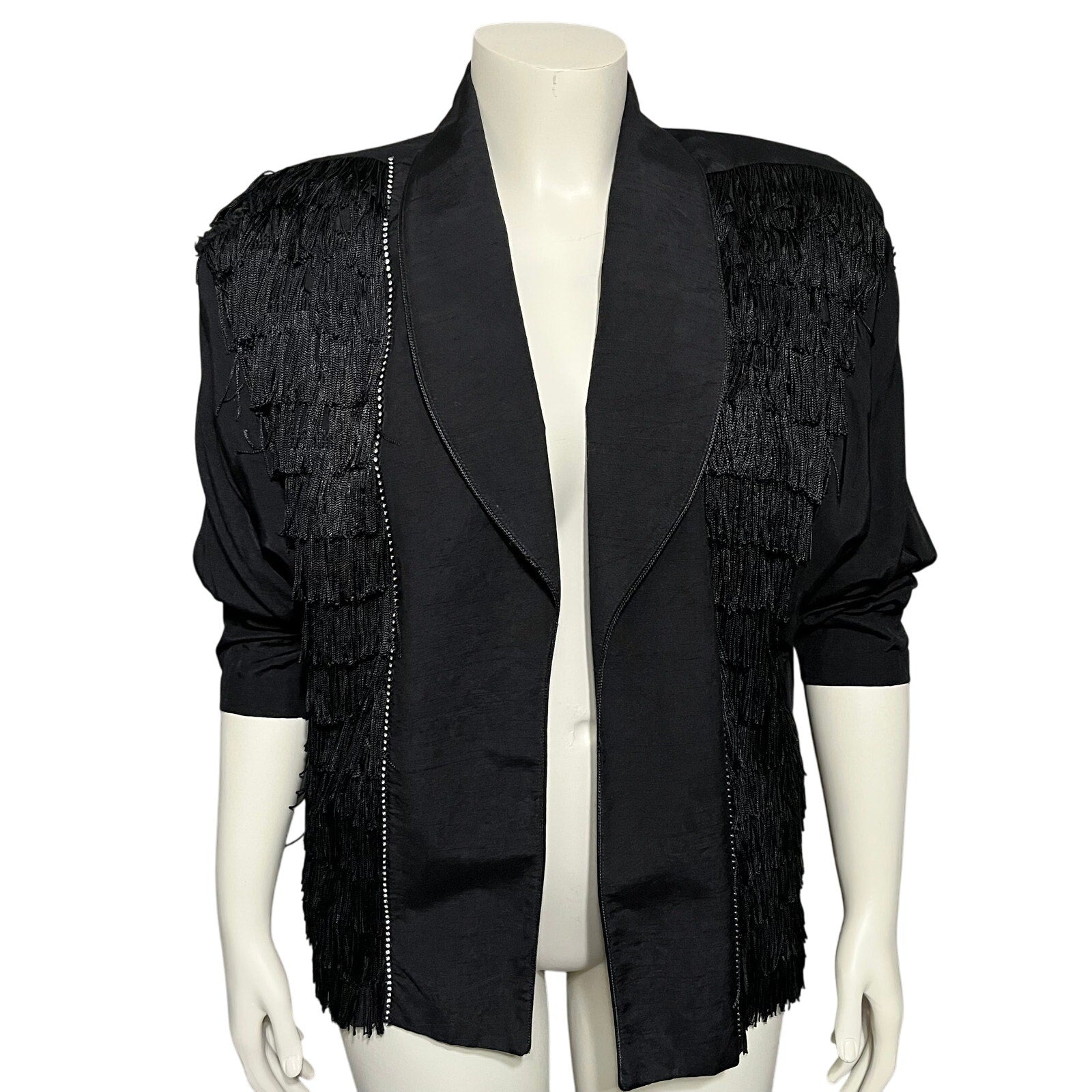 Vintage Cache Black With Fringe Rhinestone Blazer Jacket Sz-Large