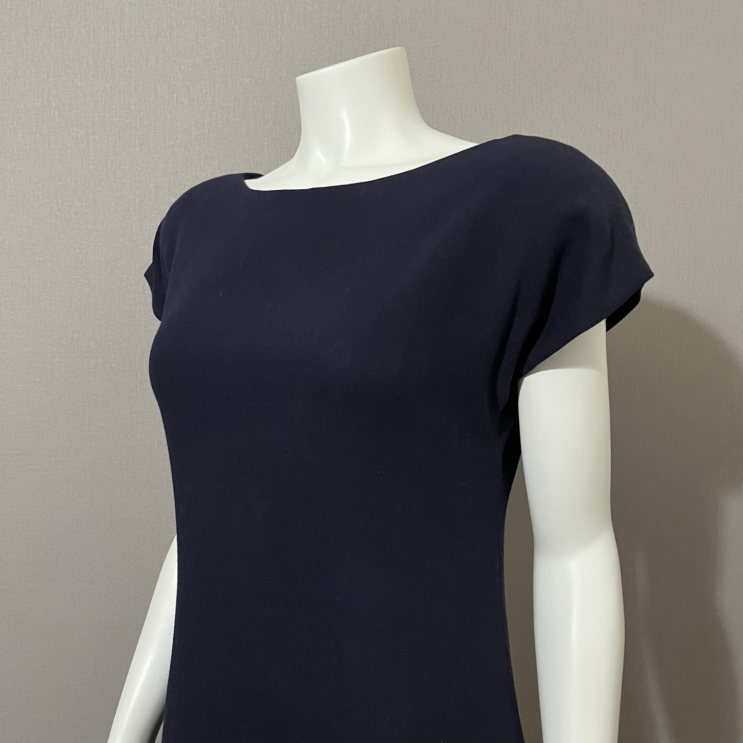 Details: Vintage Carolyne roehm navy shift drop waist pleated hem dress, Gently used condition, please see photos for flaws! Please look through all photos for any flaws to verify the condition. Major flaws will be disclosed.