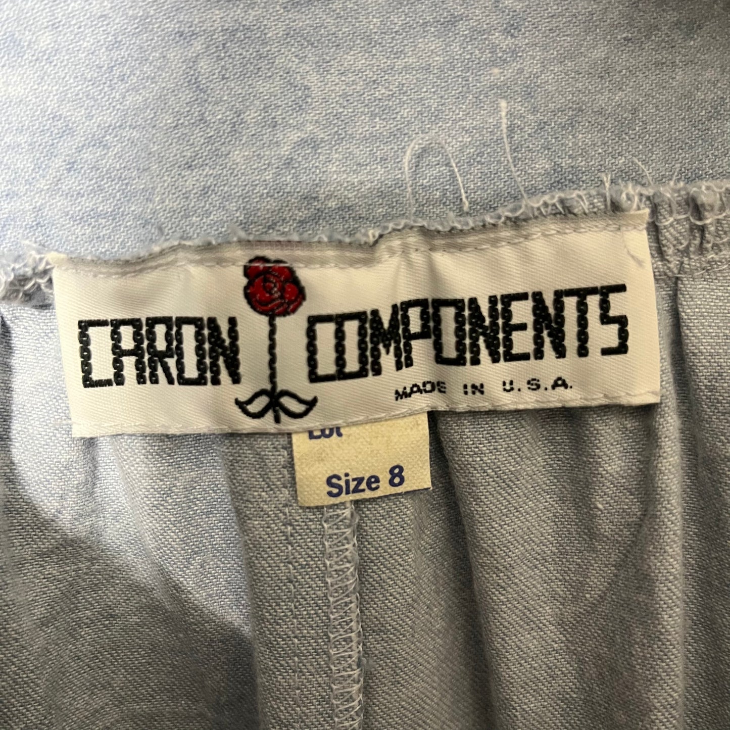 Details: Vintage Caron Components Denim Jacket/Culottes 2pc Set, with button & pockets for added detail. Pants are high waisted culottes with pockets.
