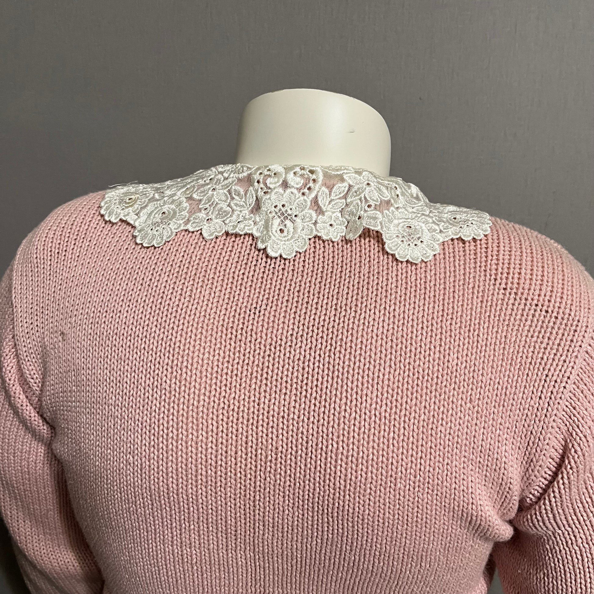 Vintage Chaus Light Pink Lace Collar Cardigan Sweater Petite