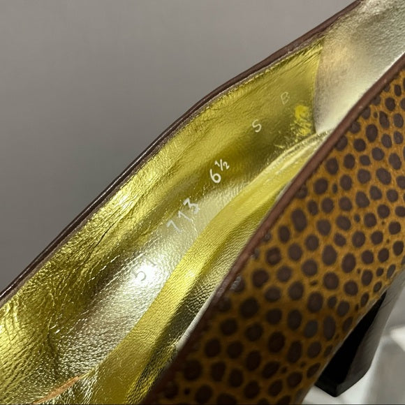 Vintage Escada Cognac Brown Suede Leather Heel Sz-6 1/2