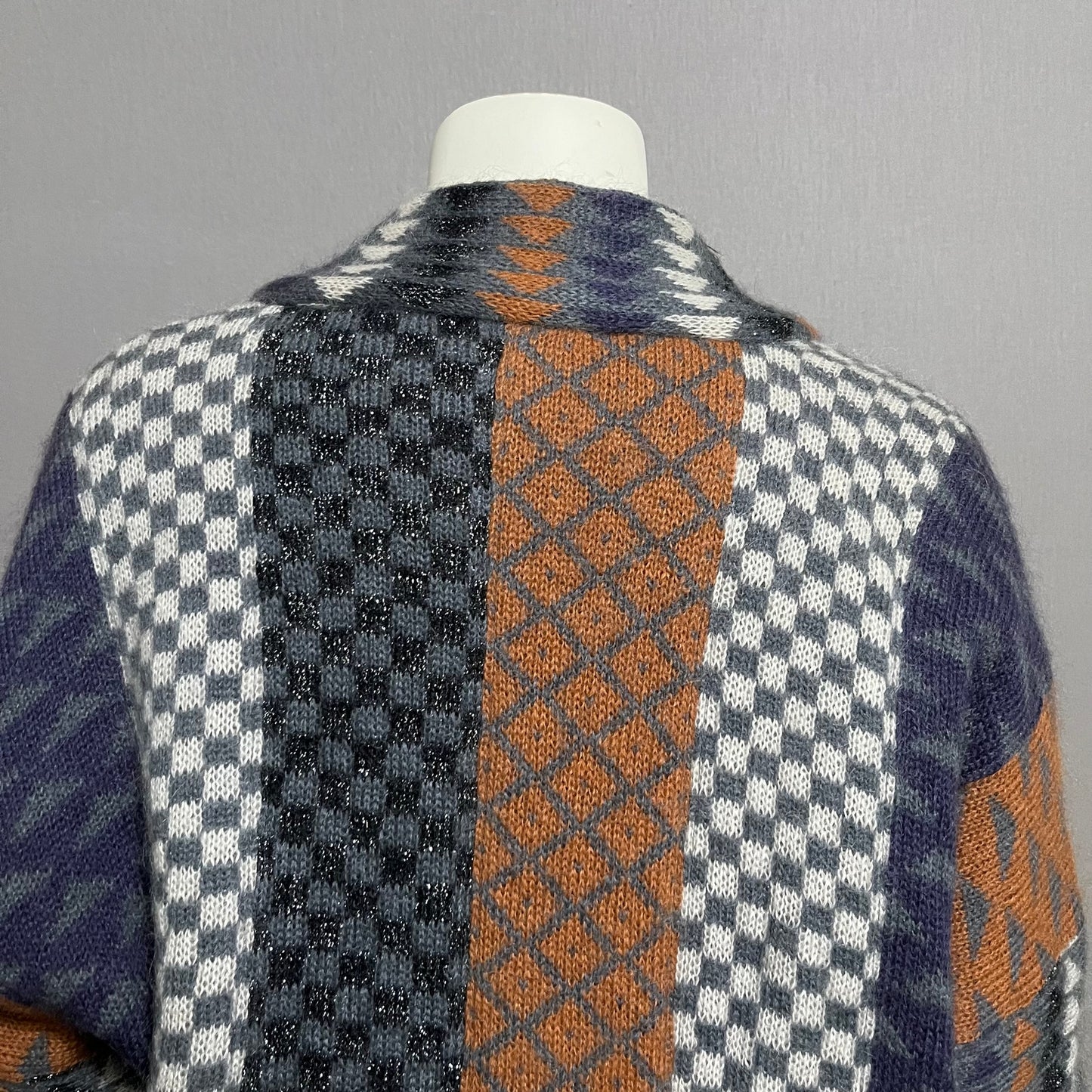 Vintage Escada Mohair Wool Gray Geometric Print Chunky Women’s Sweater Sz-34