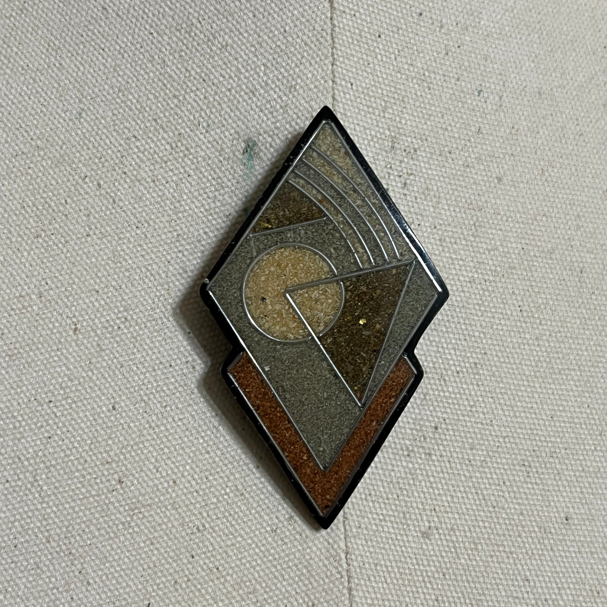 Elegant geometric design. Features earthy shades. Perfect for any outfit.