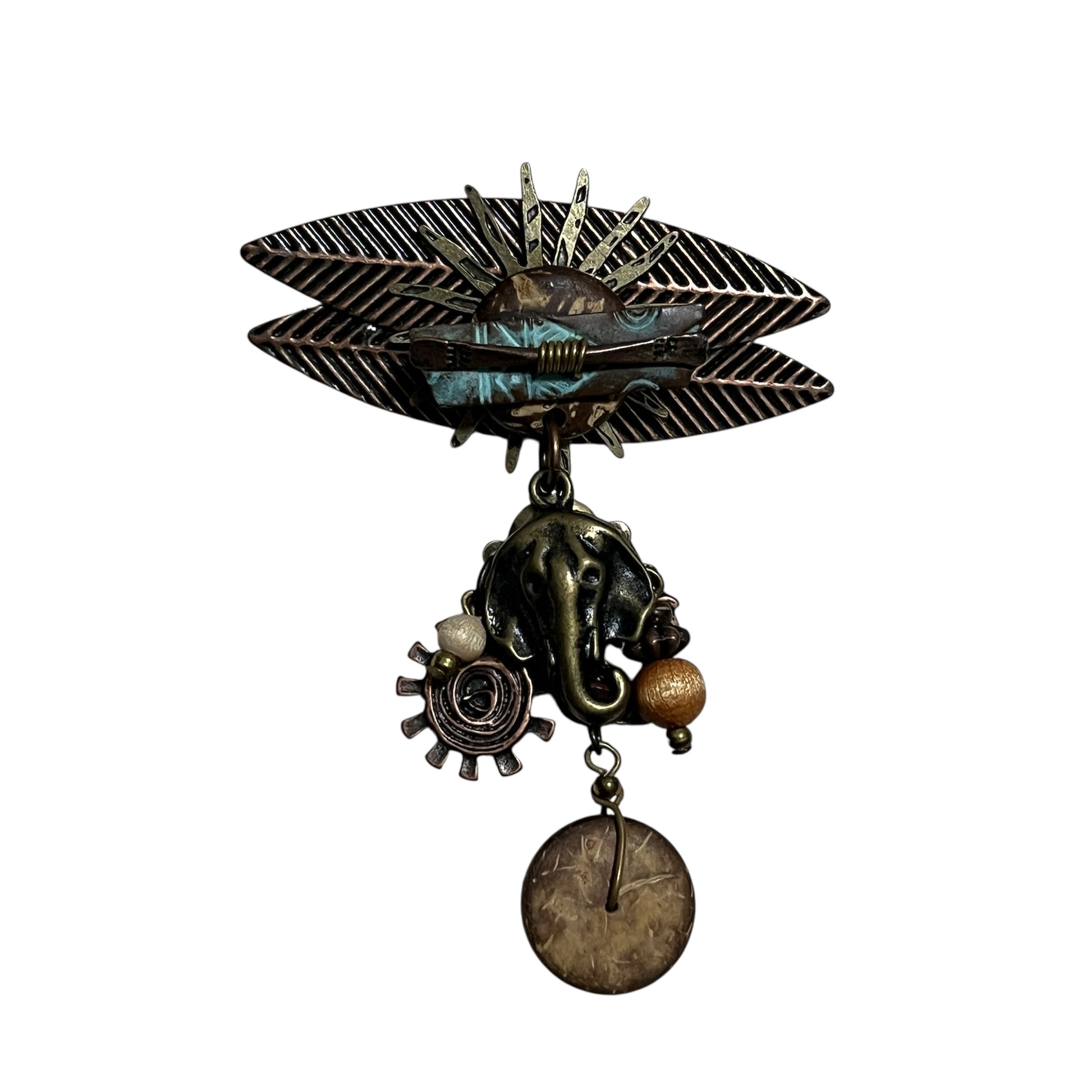 Vintage-Inspired Elephant with Bronze Accents Brooch