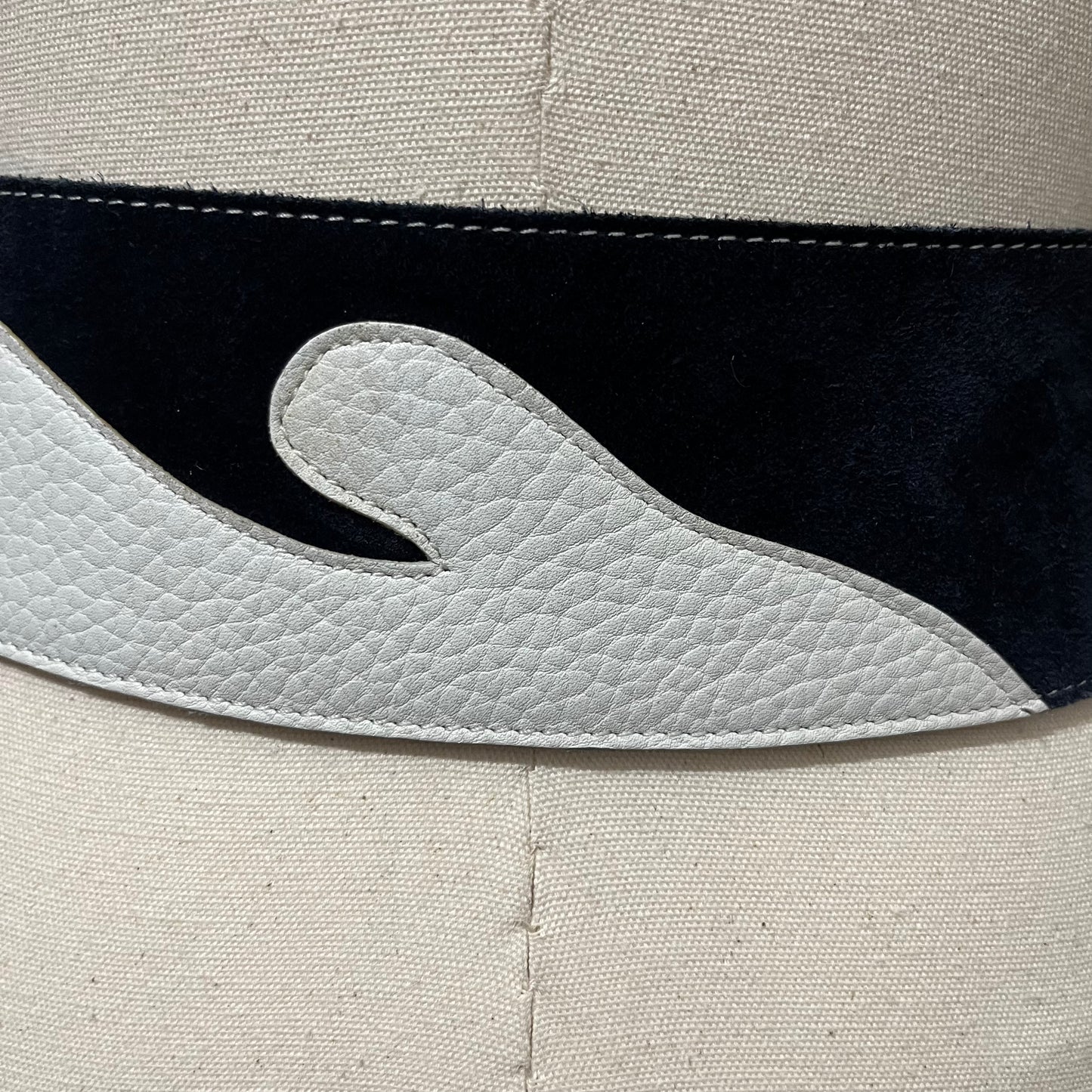 Vintage Johnny Farah Black/ White Cowhide Suede Leather Belt Sz-Small