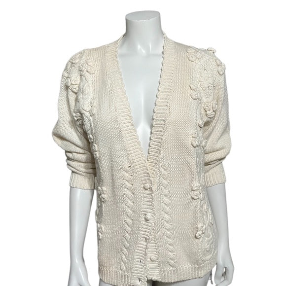 Vintage Joyce Cream Ramie | Cotton Chunky Knit Cardigan
