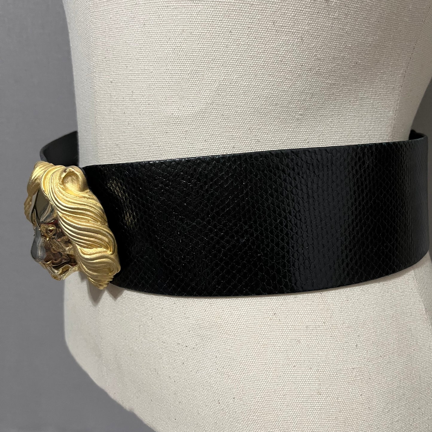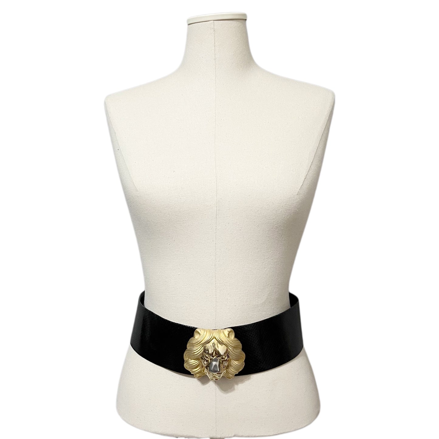 Vintage Judith Lieber Black Wide Width Snakeskin Lion Head Adjustable Belt Sz-OS