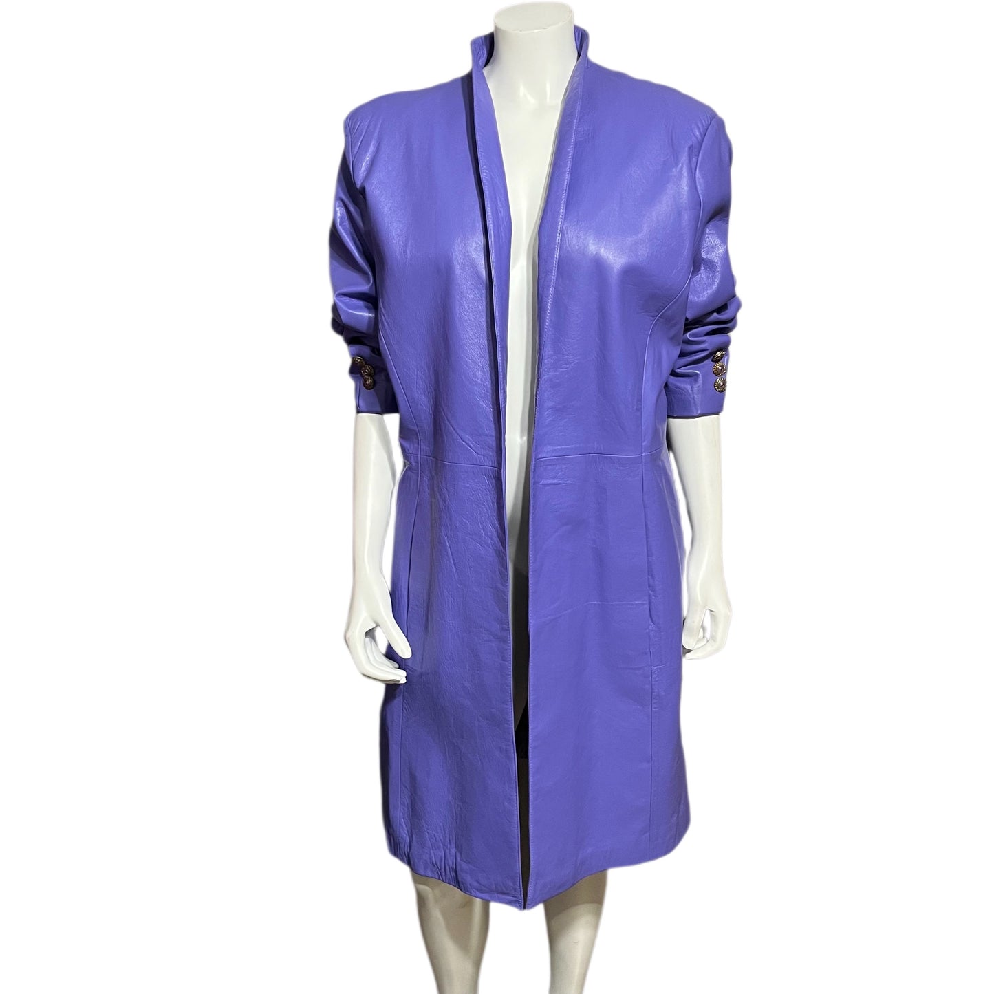 Vintage Lavender Open Front Genuine Leather Jacket Sz-XXL