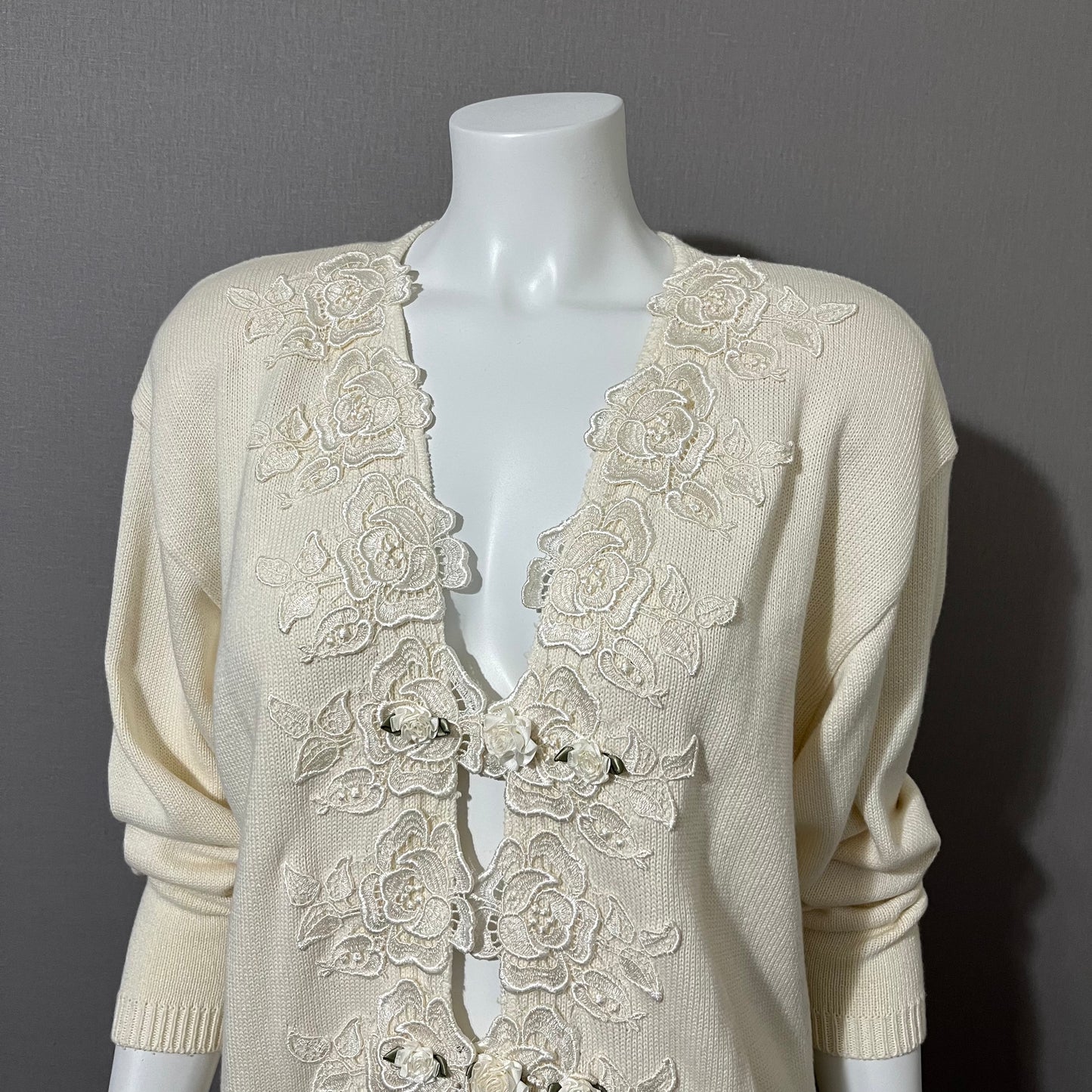 Vintage Lynn Yang Cream Floral Embroidered Sweater Sz-Medium