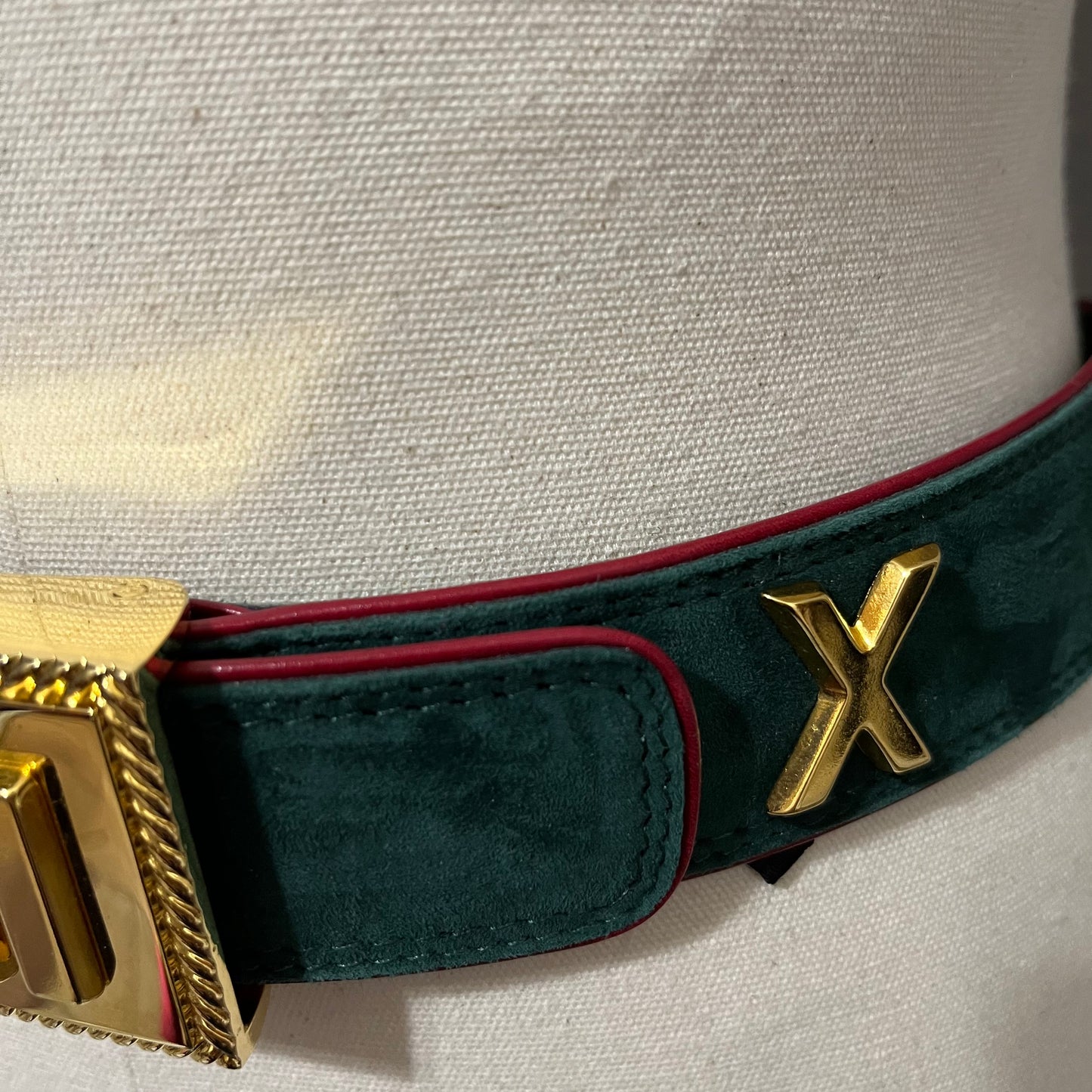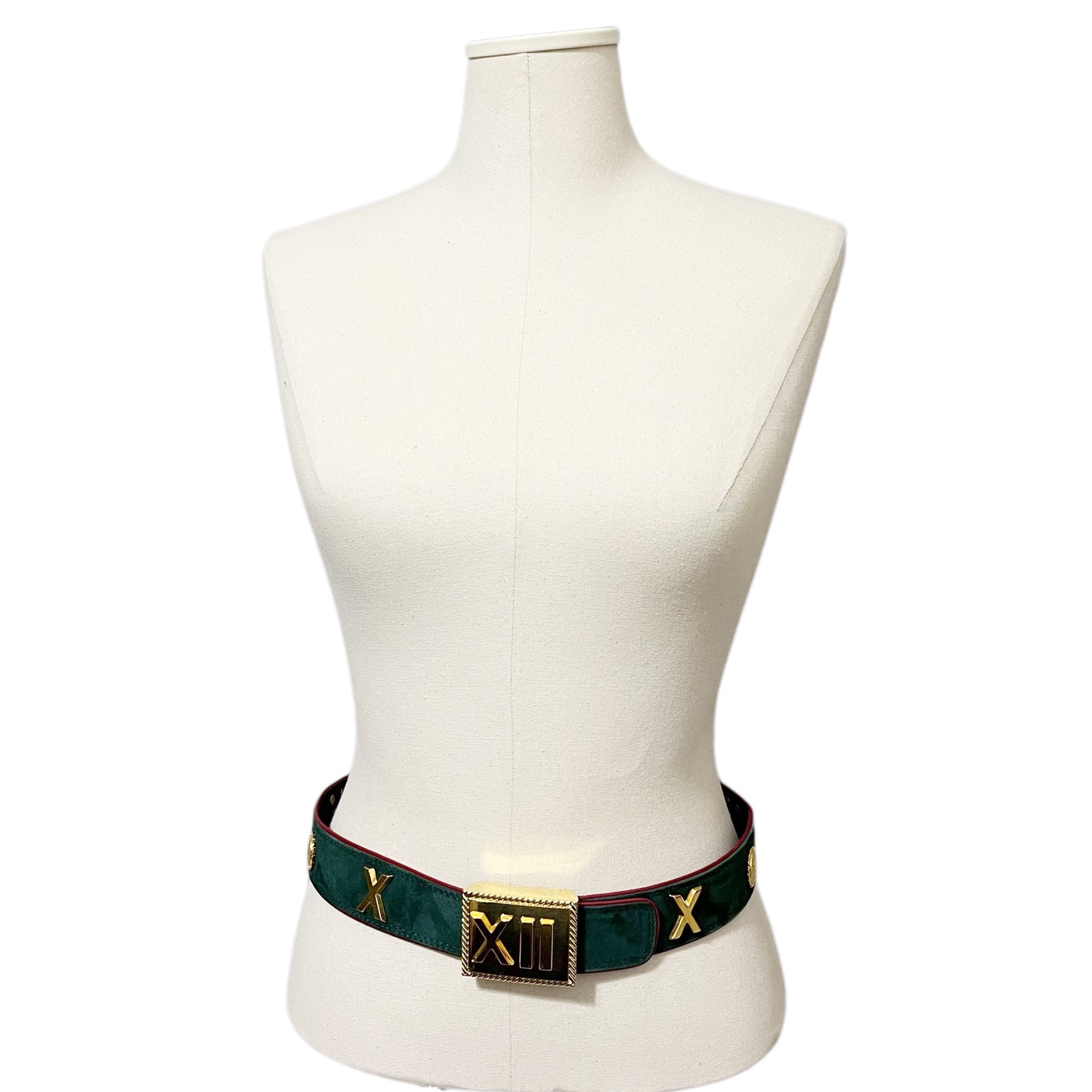 Vintage Rare Escada Roman Numeral Green Suede Leather Belt Sz-40