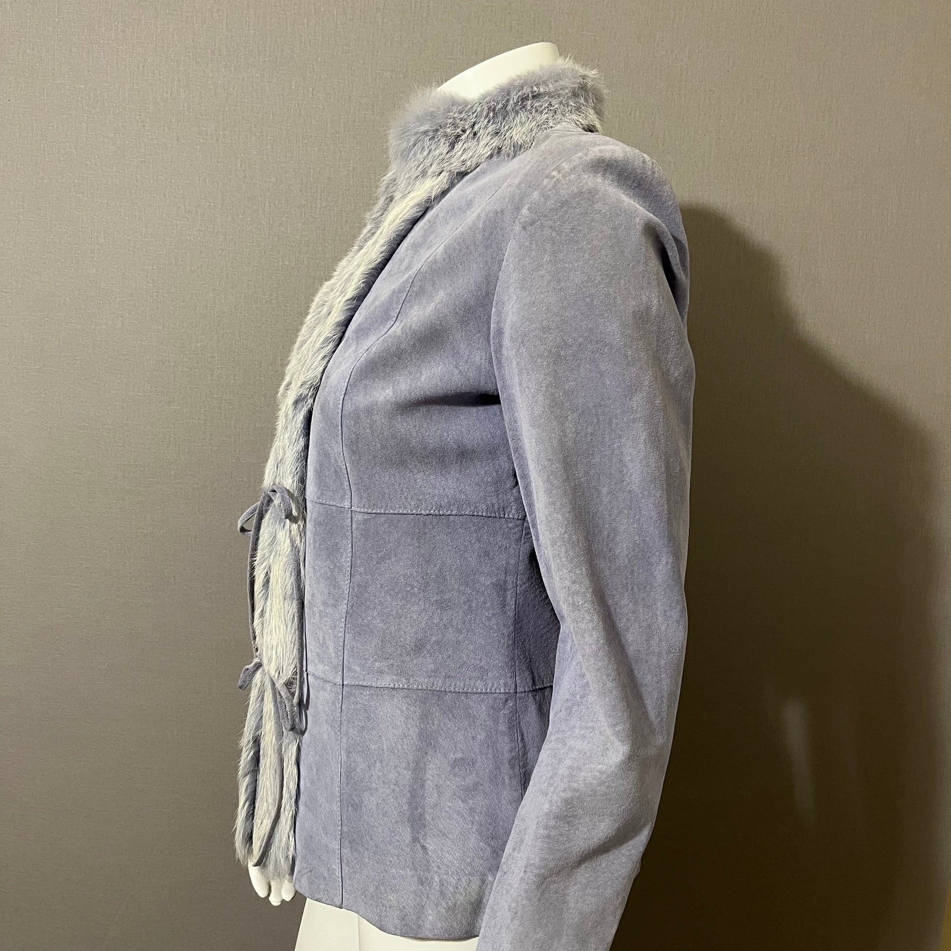 Vintage Revue Light Blue Rabbit Fur Trim Suede Leather Sz-6