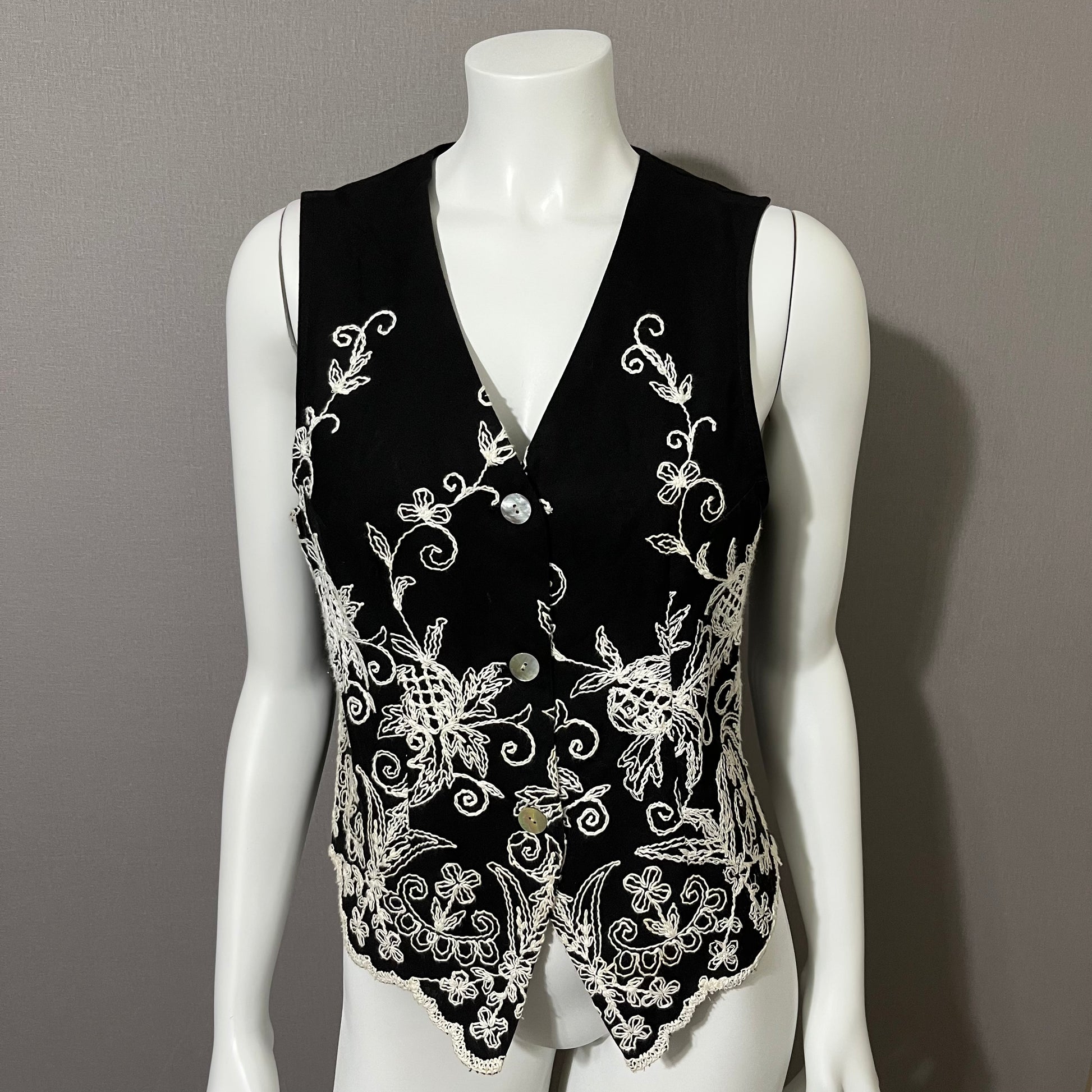Vintage Sophisticates Black Embroidered Cotton Vest Sz-Small