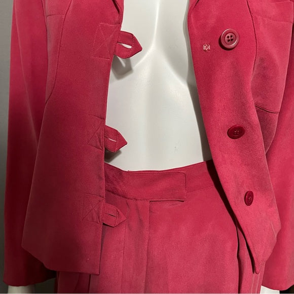 Details: Vintage Via Seta pink 2 Pc 100% silk pant set, With Pockets and button for added detail. Gently used condition, please see photos for flaws! Please look through all photos for any flaws to verify the condition. Major flaws will be disclosed.