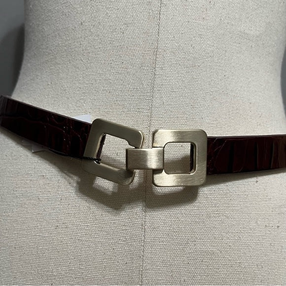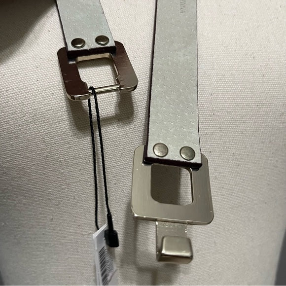 Details: WHBM Burgundy Skinny Leather, With buckle for added detail. new with tags please see photos for flaws! Please look through all photos for any flaws to verify the condition. Major flaws will be disclosed.