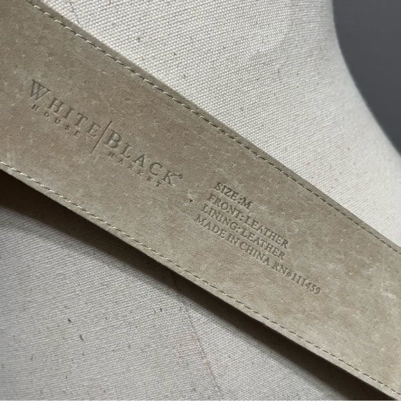 White House Black Market Leather Shimmer Gold Buckle Stretch Belt Sz-Medium