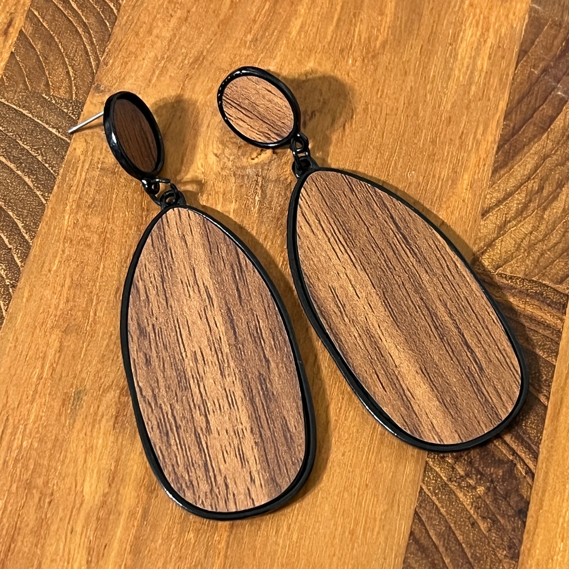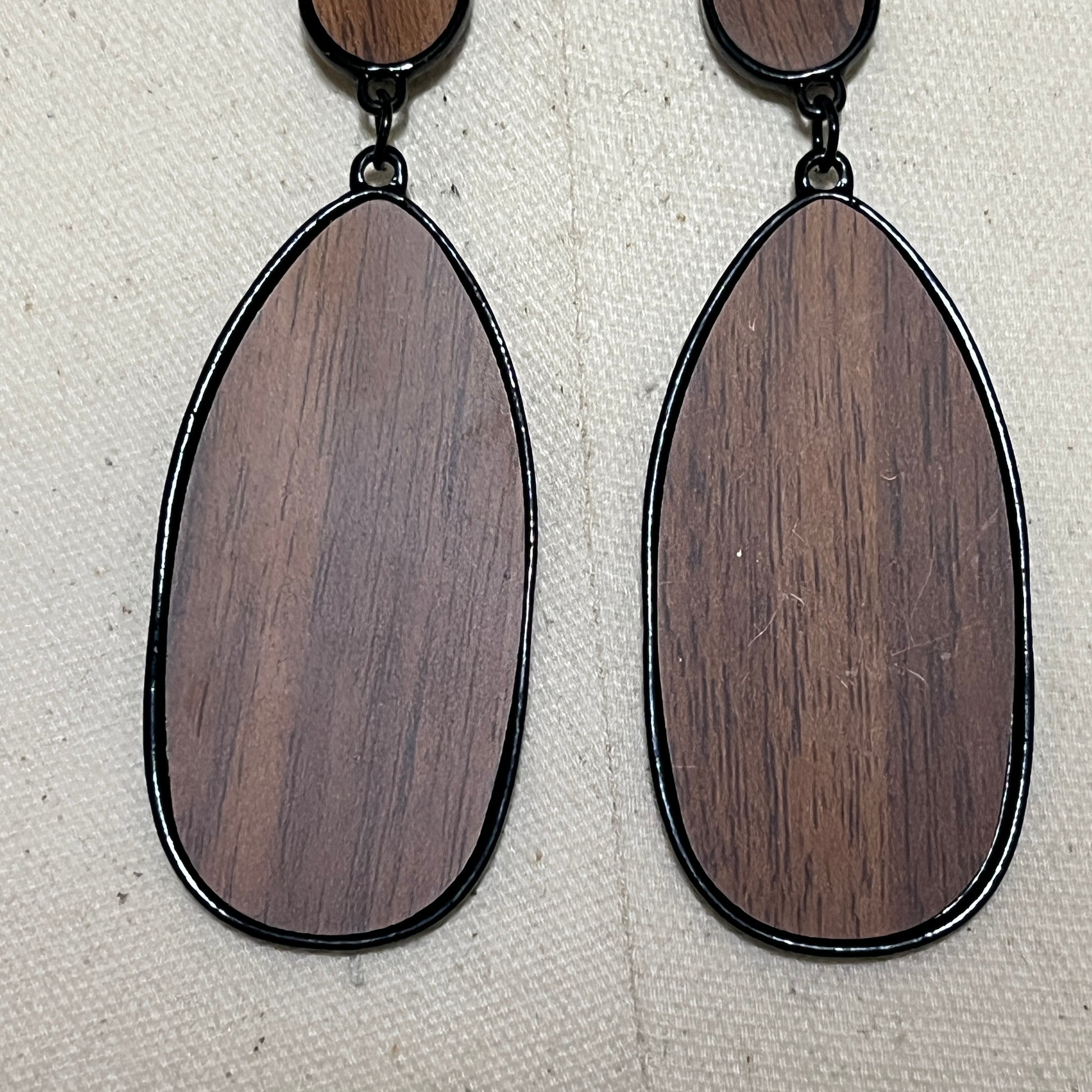 Wooden Brown and Black Drop Earrings