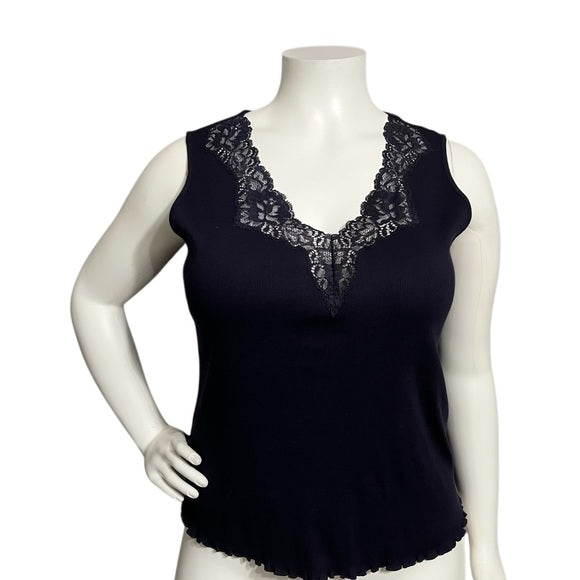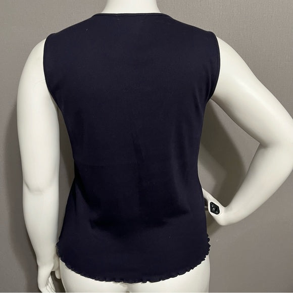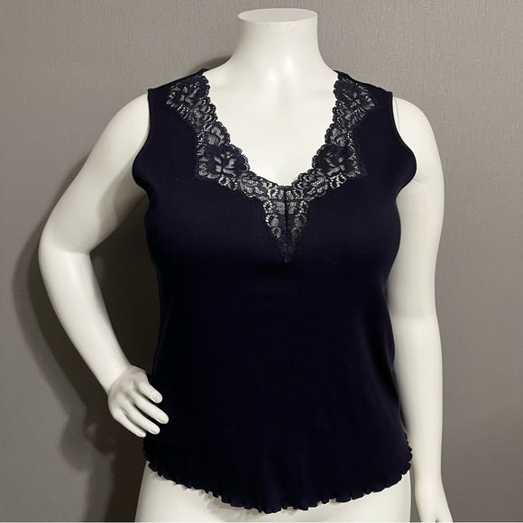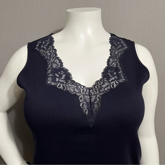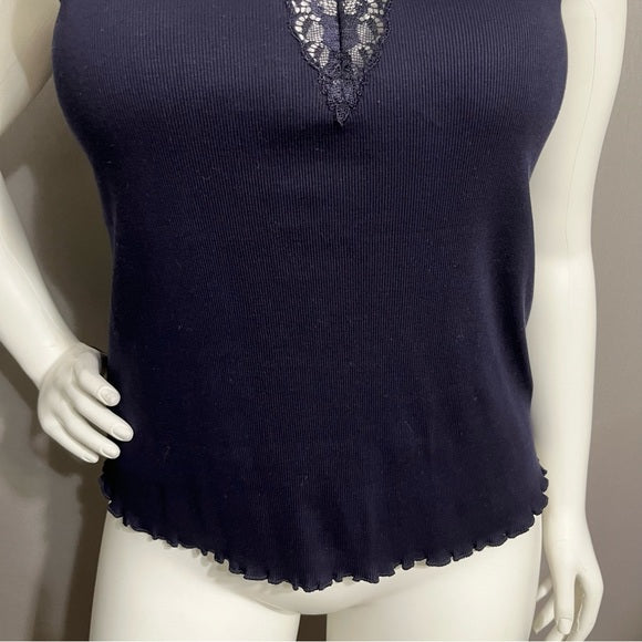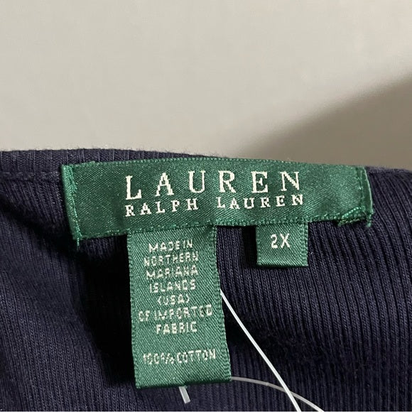⭐️Lauren Ralph Lauren V-Neck 100% Cotton Navy Tank Top Sz-2X